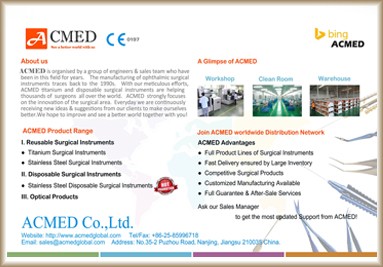 With our Quick Response, Fast Delivery, A+ After Sales Service & Customerization Design, ACMED is always ready to be your best friend to help you for the surgery.